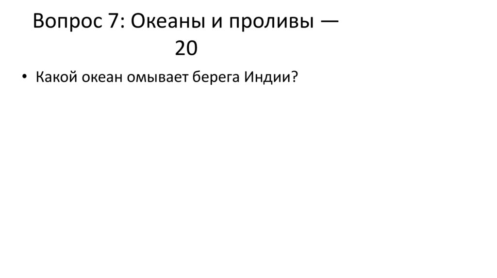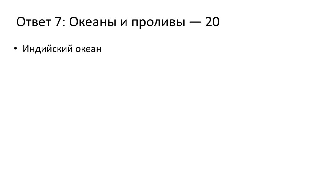 Ответ 7: Океаны и проливы — 20• Индийский океан