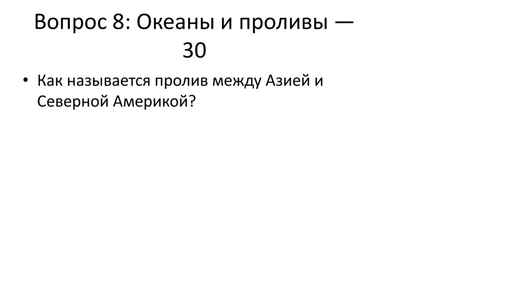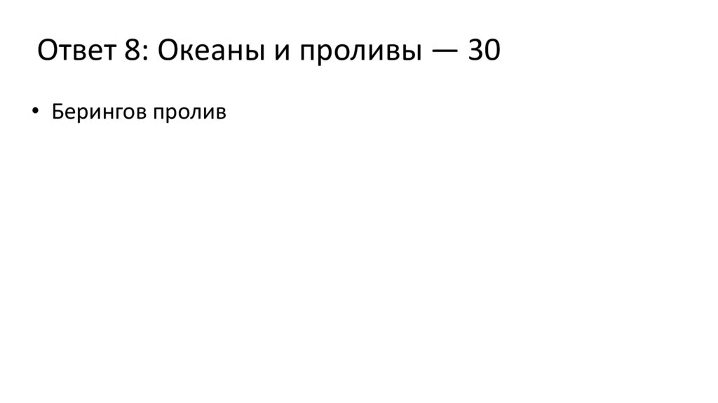 Ответ 8: Океаны и проливы — 30• Берингов пролив