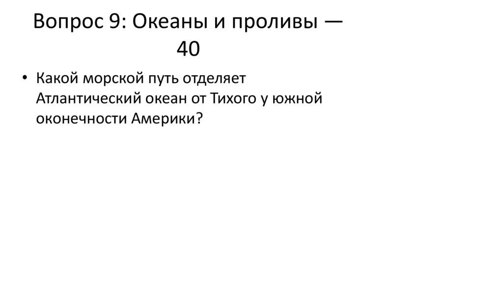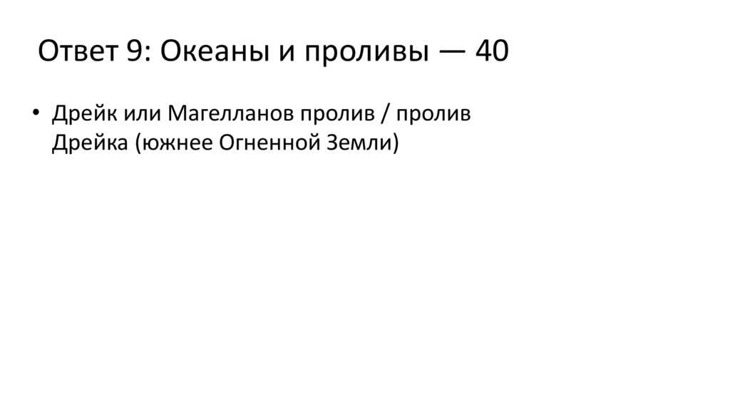 Ответ 9: Океаны и проливы — 40• Дрейк или Магелланов пролив / пролив