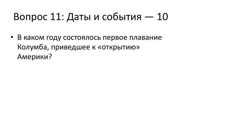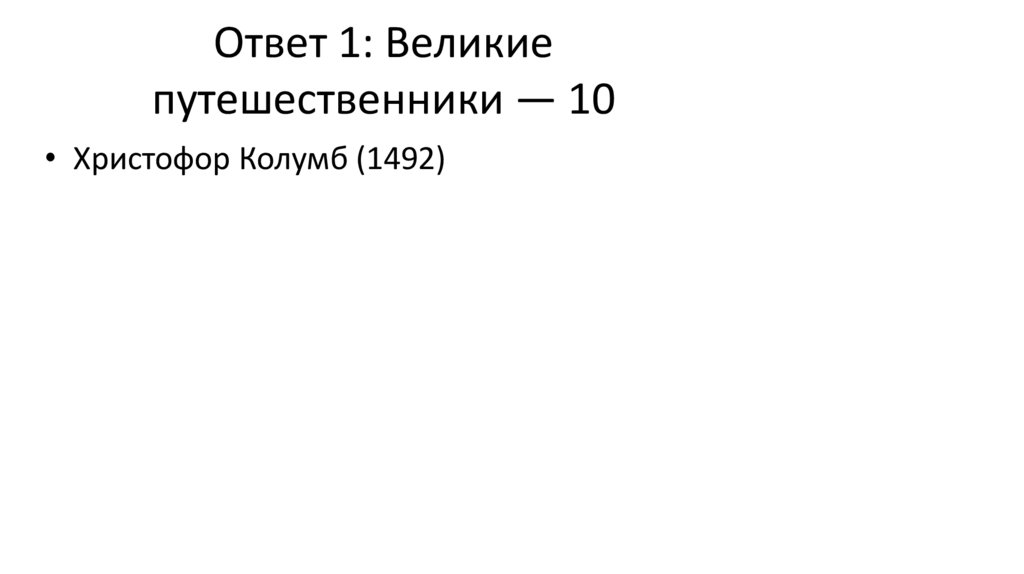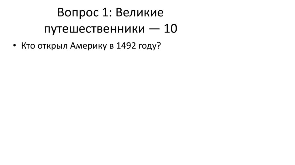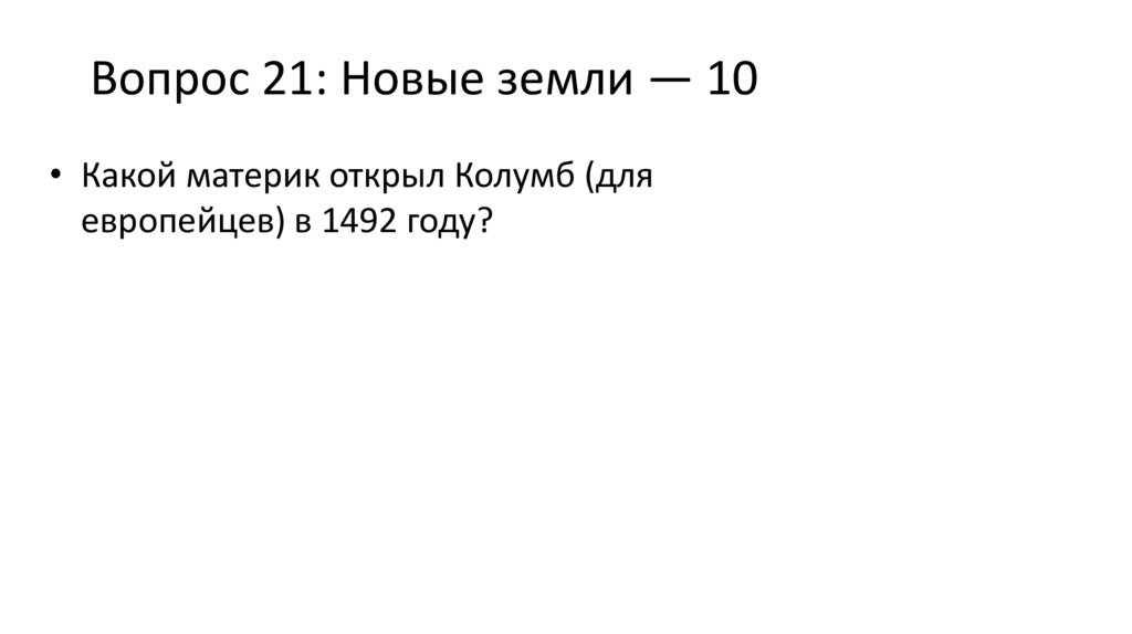 Вопрос 21: Новые земли — 10• Какой материк открыл Колумб (для
