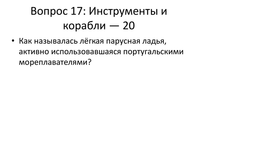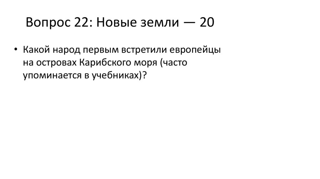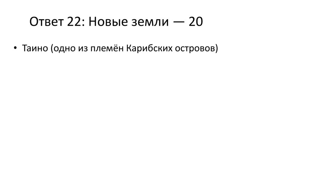 Ответ 22: Новые земли — 20• Таино (одно из племён Карибских островов)