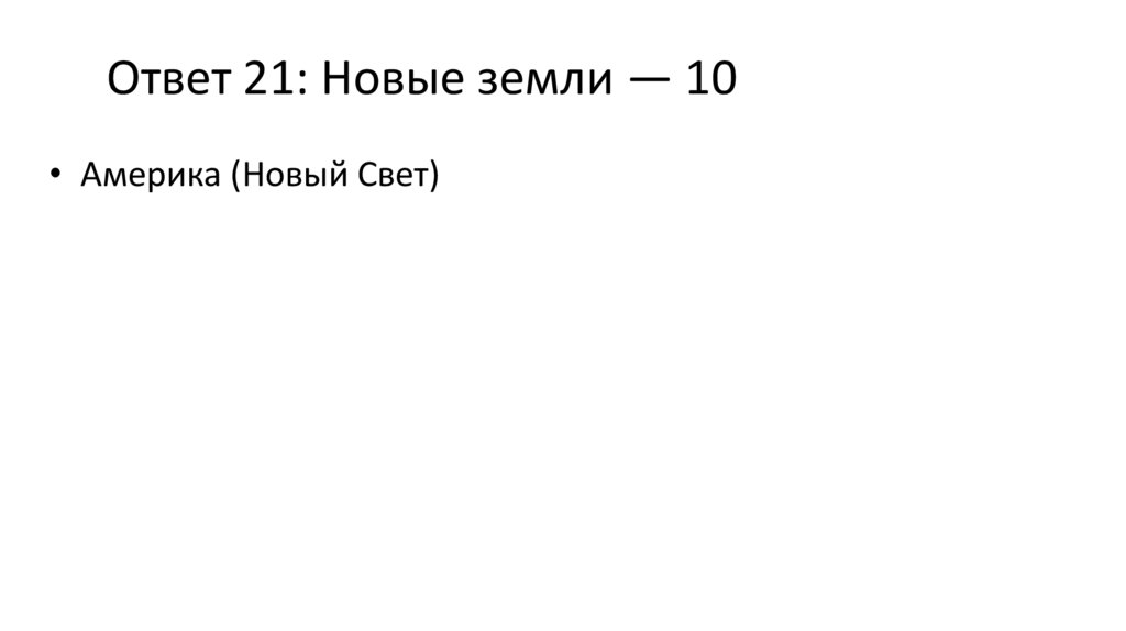Ответ 21: Новые земли — 10• Америка (Новый Свет)