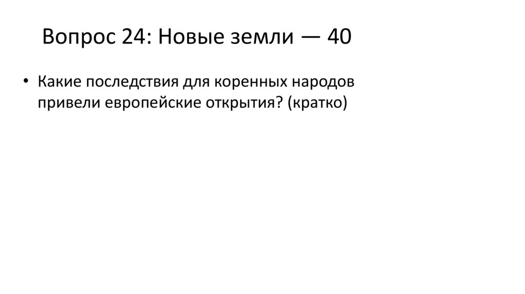 Вопрос 24: Новые земли — 40• Какие последствия для коренных народов