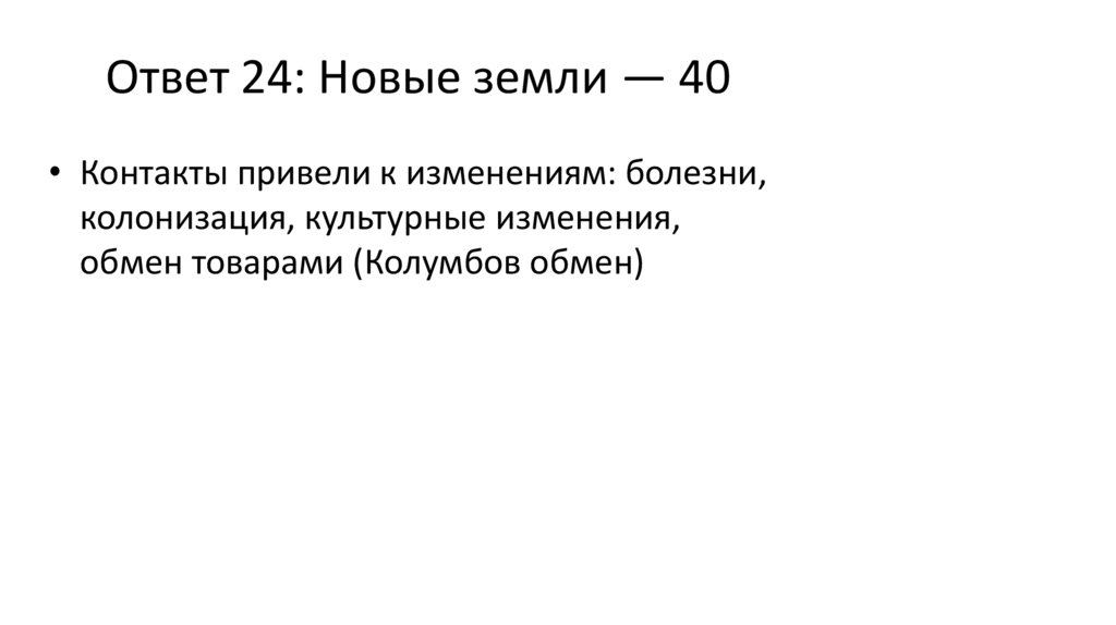 Ответ 24: Новые земли — 40• Контакты привели к изменениям: болезни,