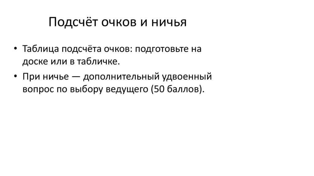 Подсчёт очков и ничья• Таблица подсчёта очков: подготовьте на