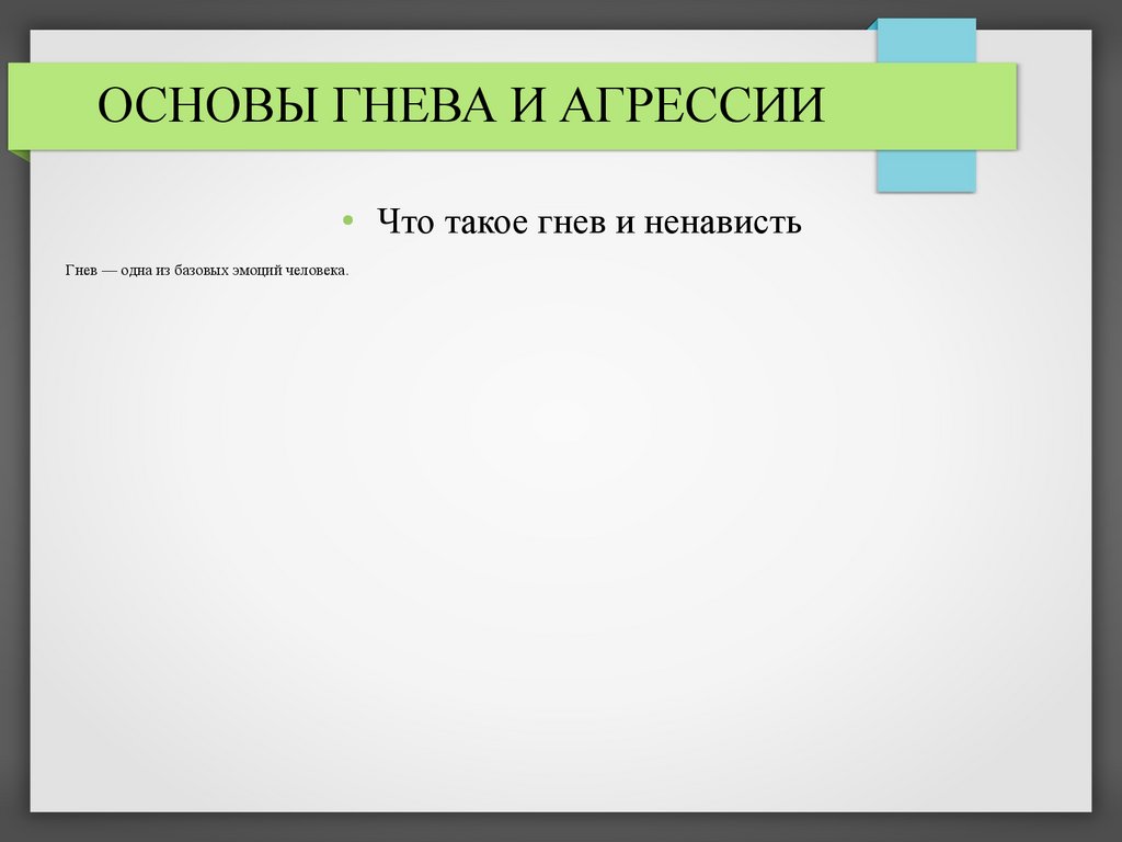 ОСНОВЫ ГНЕВА И АГРЕССИИГнев — одна из базовых эмоций человека.