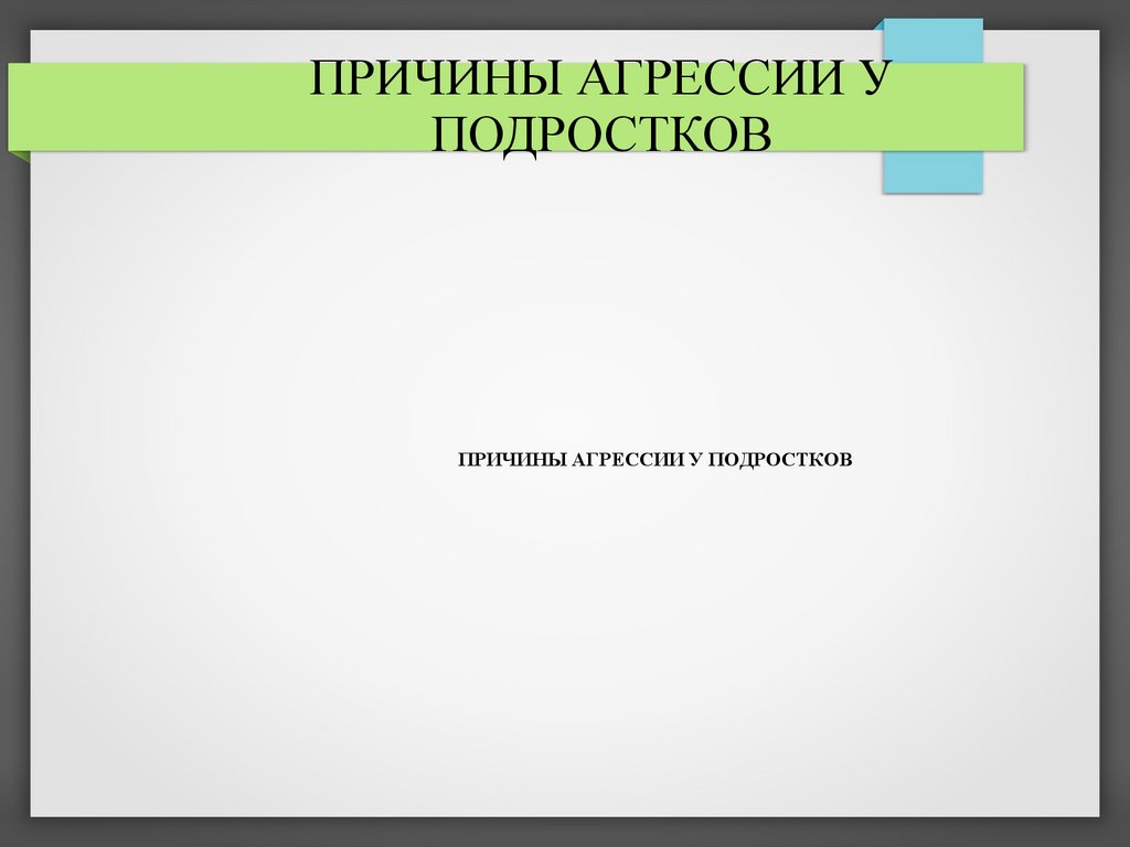 ПРИЧИНЫ АГРЕССИИ УПОДРОСТКОВ