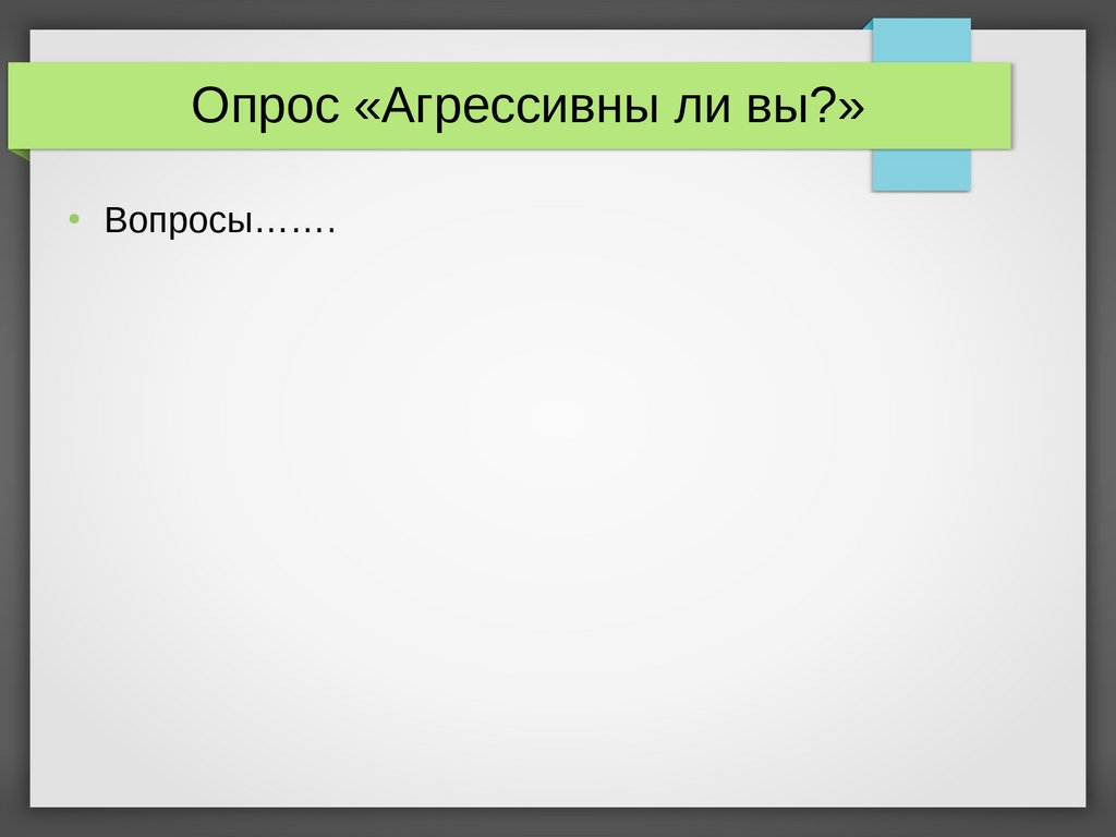 Опрос «Агрессивны ли вы?»Вопросы…….