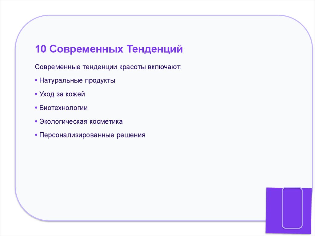 10 Современных ТенденцийСовременные тенденции красоты включают: