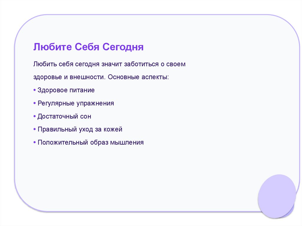 Любите Себя СегодняЛюбить себя сегодня значит заботиться о своем