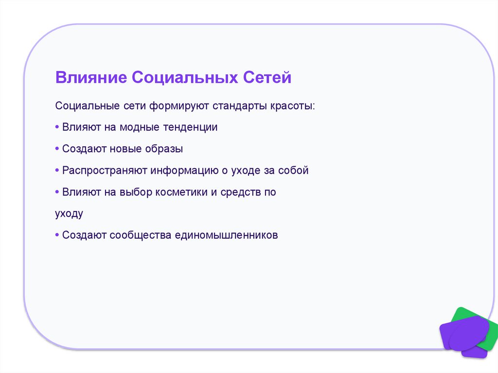 Влияние Социальных СетейСоциальные сети формируют стандарты красоты: