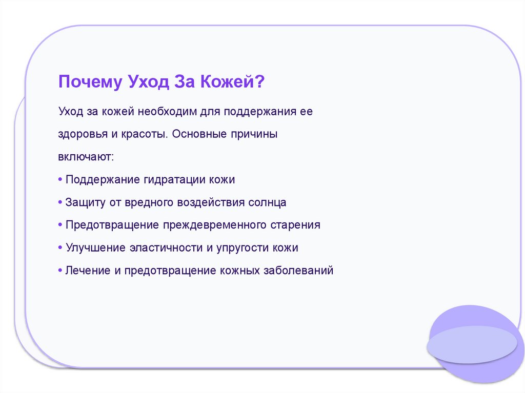 Почему Уход За Кожей?Уход за кожей необходим для поддержания ее