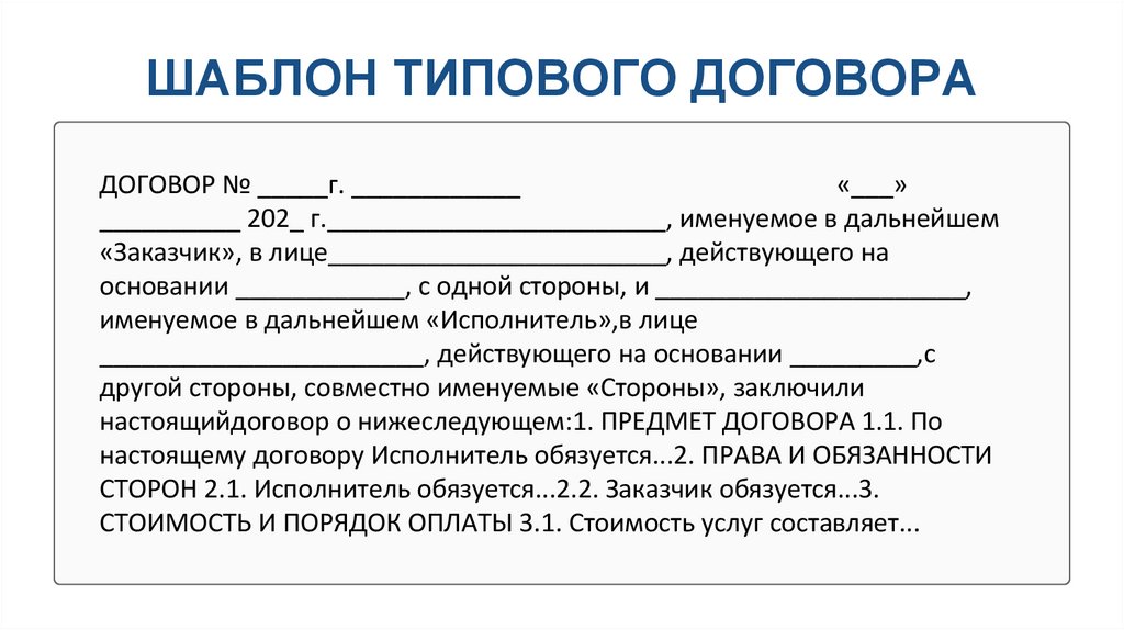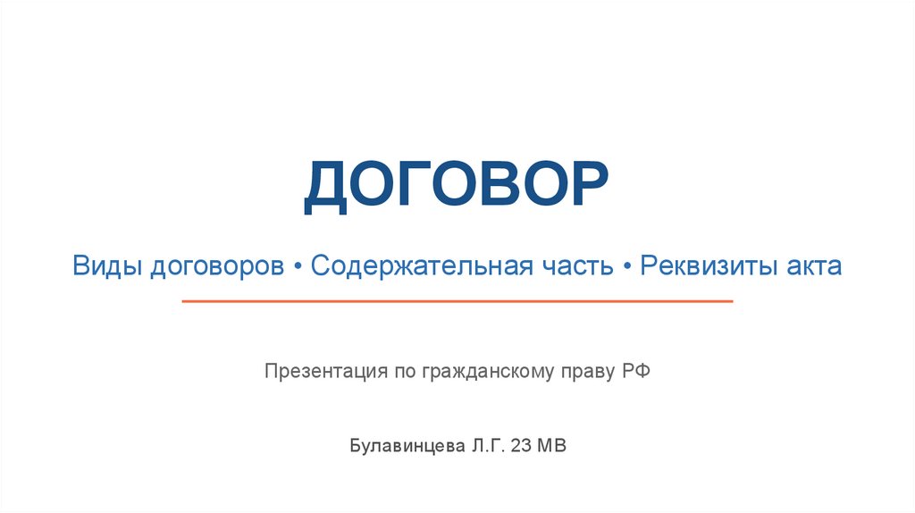 ДОГОВОРВиды договоров • Содержательная часть • Реквизиты акта