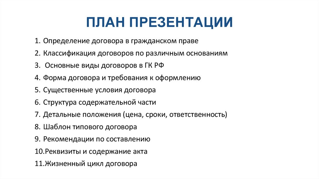 ПЛАН ПРЕЗЕНТАЦИИ1. Определение договора в гражданском праве