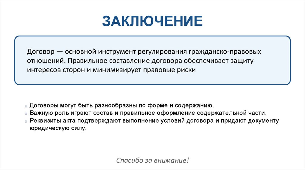 ЗАКЛЮЧЕНИЕДоговор — основной инструмент регулирования гражданско-правовых