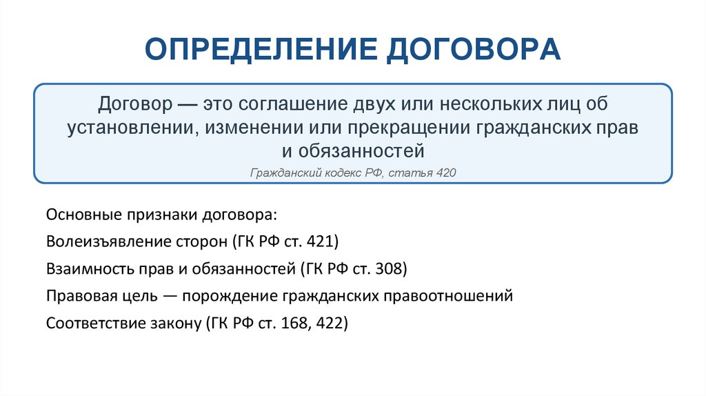 ОПРЕДЕЛЕНИЕ ДОГОВОРАДоговор — это соглашение двух или нескольких лиц об