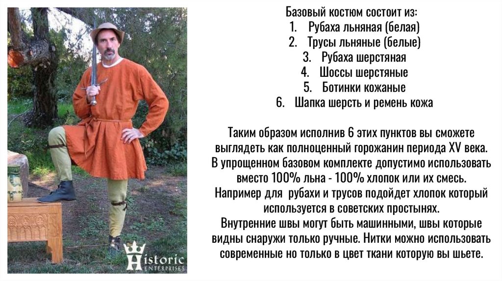 Базовый костюм состоит из:1. Рубаха льняная (белая)