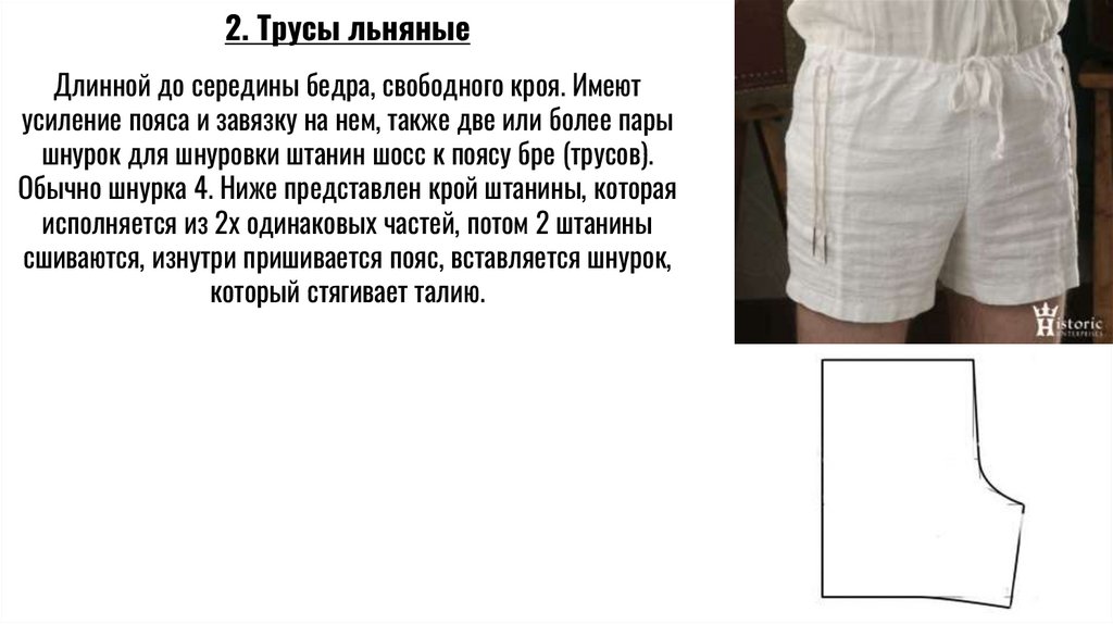 2. Трусы льняныеДлинной до середины бедра, свободного кроя. Имеют
