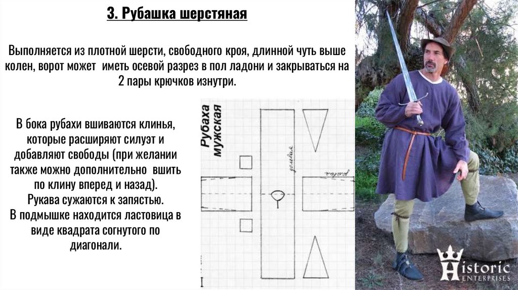 3. Рубашка шерстянаяВыполняется из плотной шерсти, свободного кроя, длинной чуть выше
