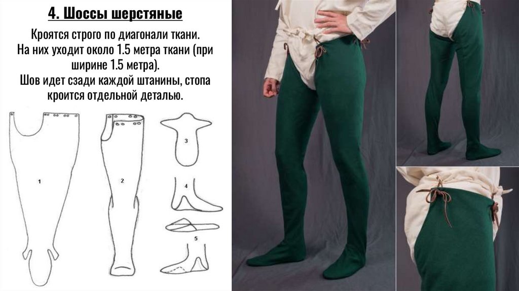 4. Шоссы шерстяныеКроятся строго по диагонали ткани.
