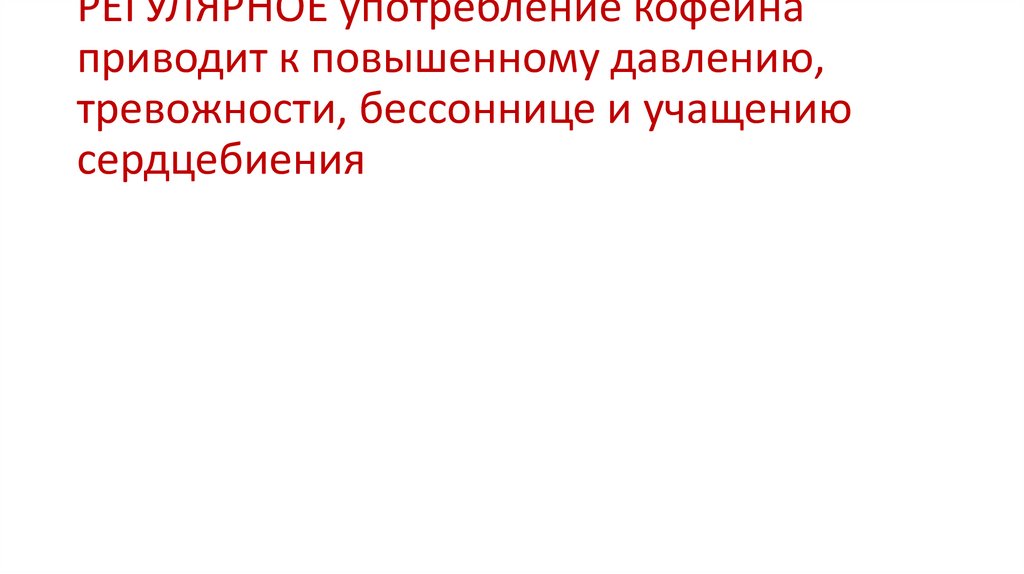 РЕГУЛЯРНОЕ употребление кофеинаприводит к повышенному давлению,