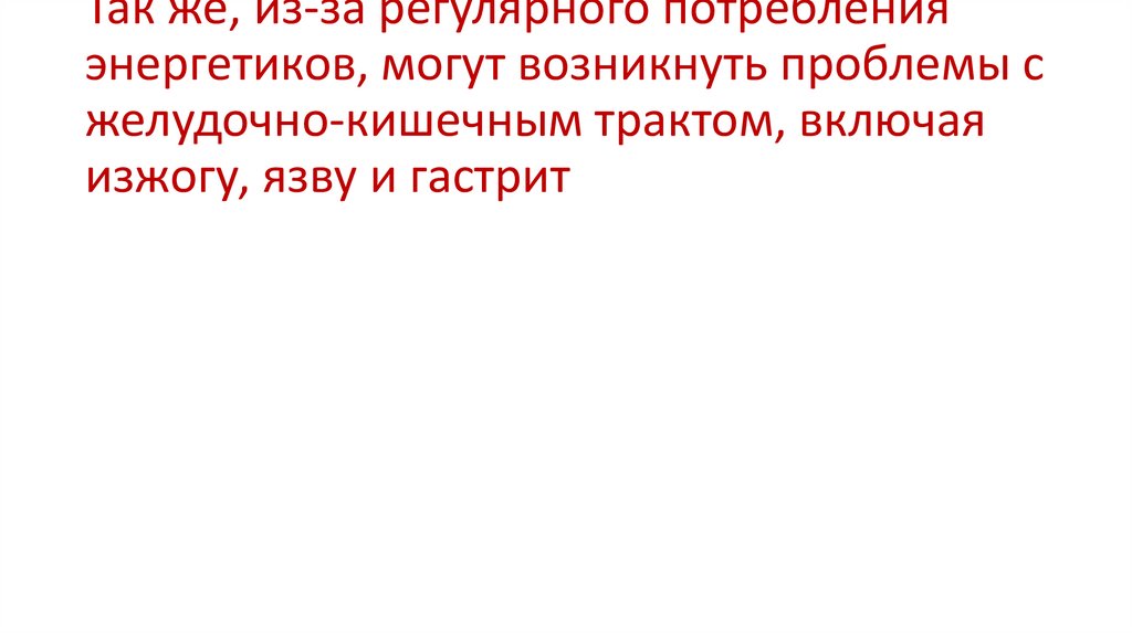 Так же, из-за регулярного потребленияэнергетиков, могут возникнуть проблемы с