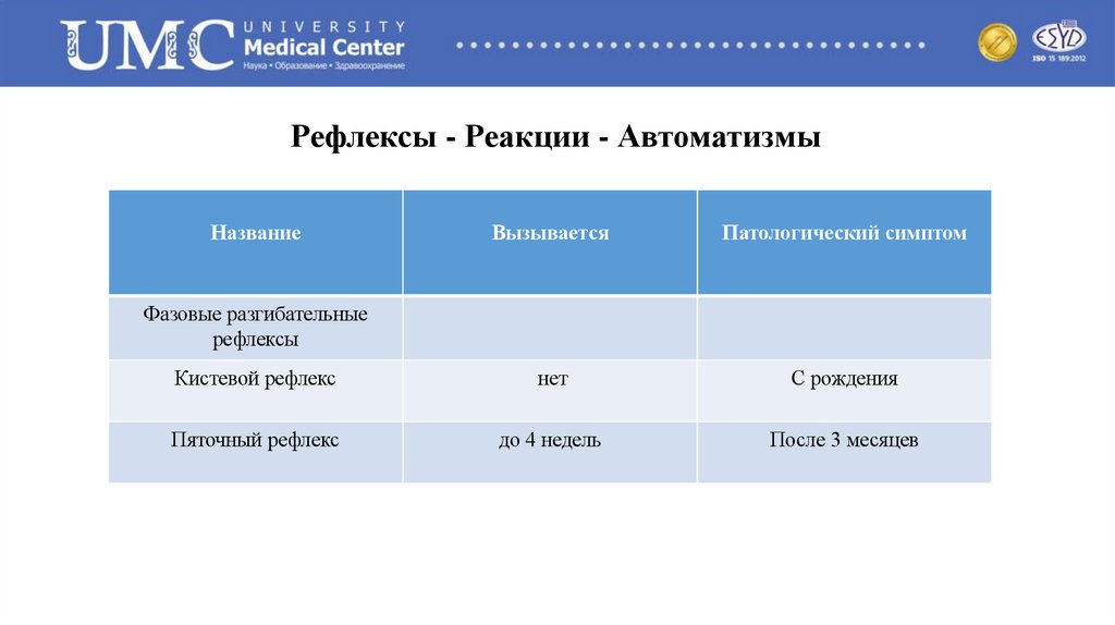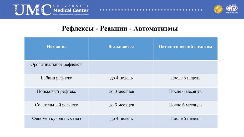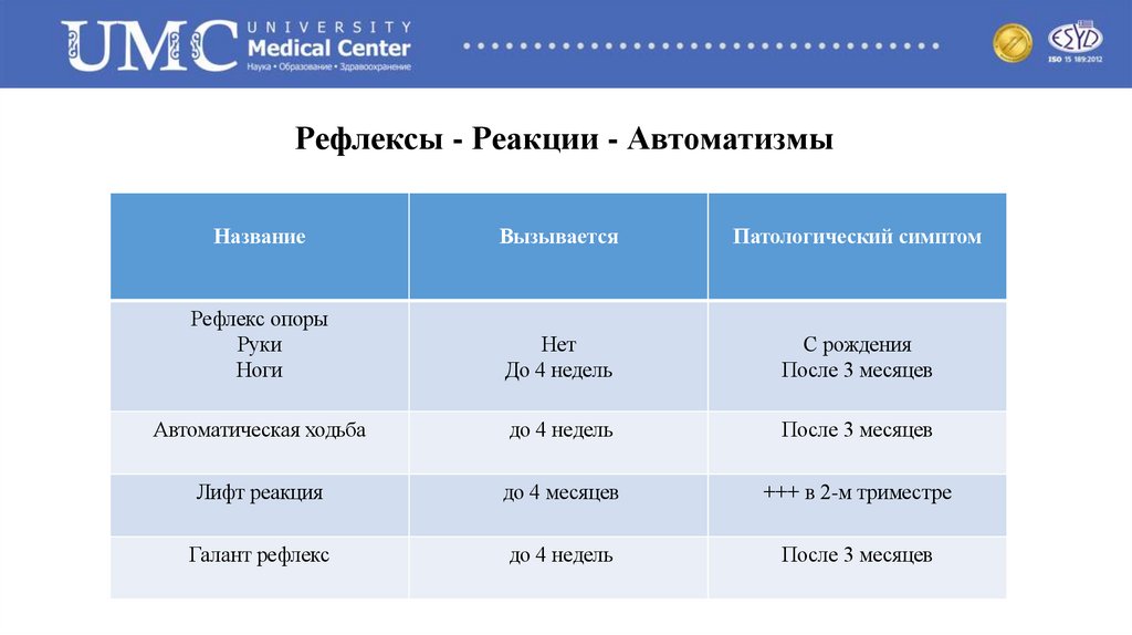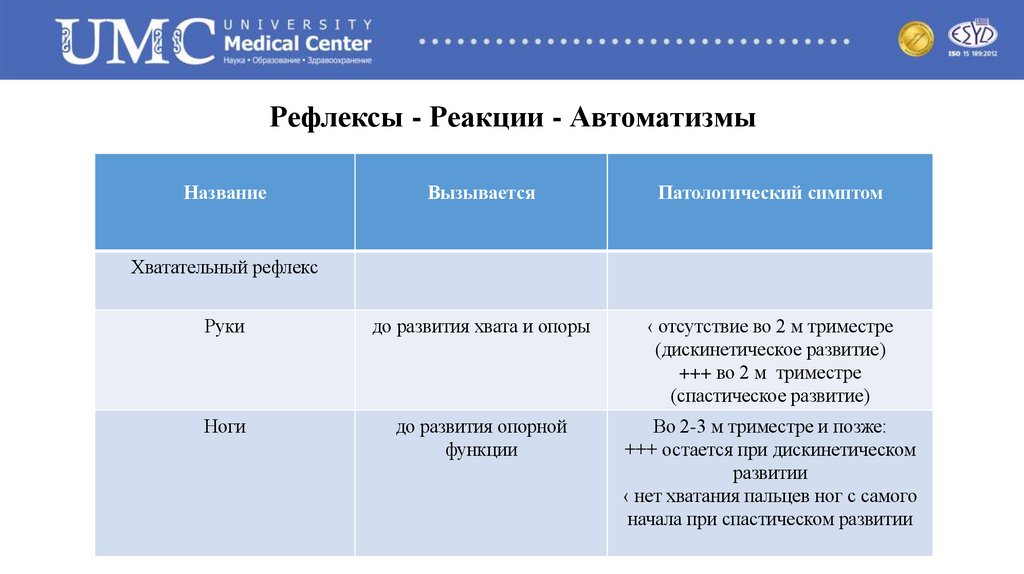 • Начинается внутриутробно на10 недели беременности• Комплексный двигательный стереотип.
