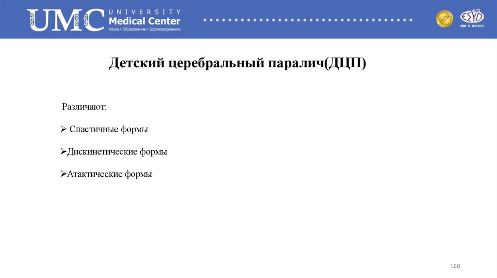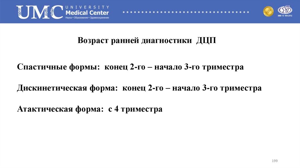 Возраст ранней диагностики ДЦПСпастичные формы: конец 2-го – начало 3-го триместра