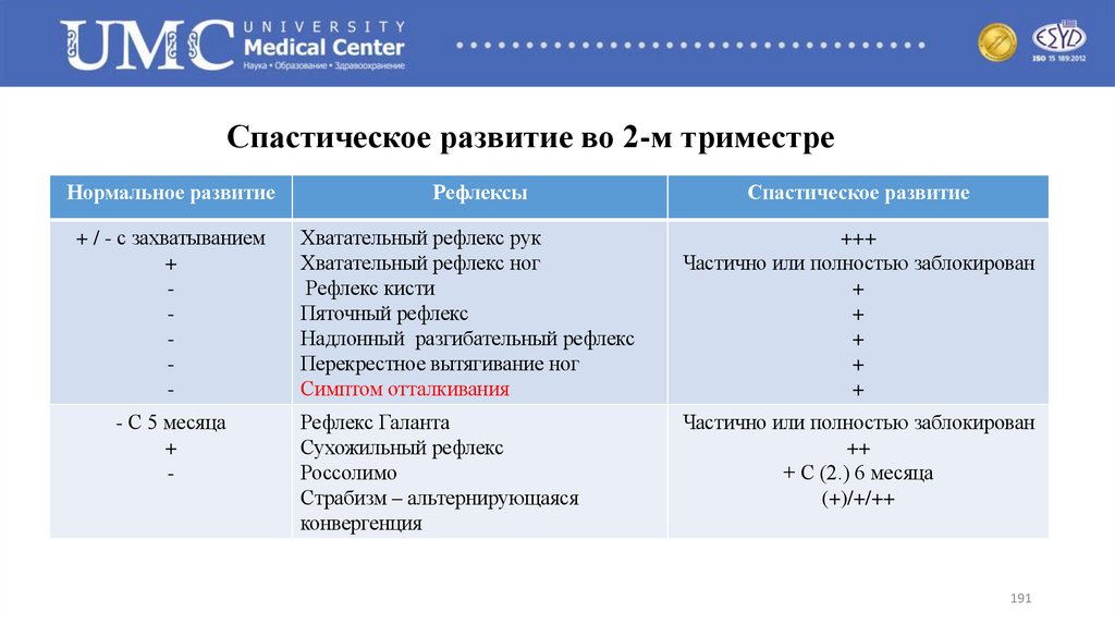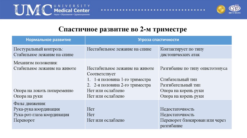 Спастическое развитие во 2-м триместреНормальное развитие