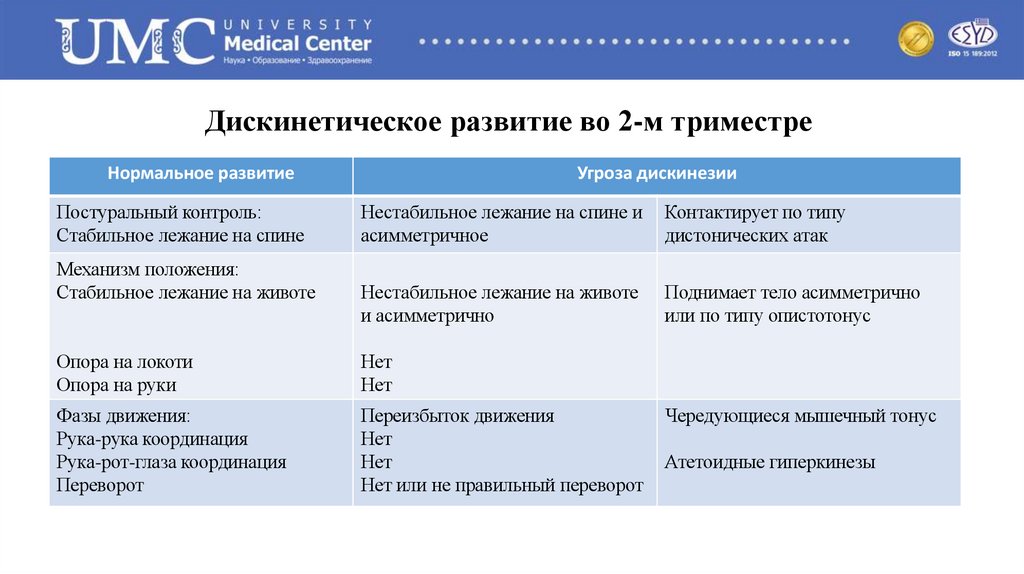 Дискинетическое развитие во 2-м триместреНормальное развитие