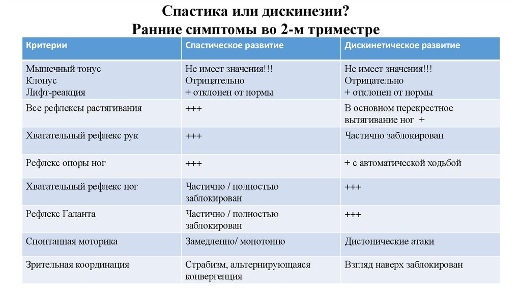 Спастика или дискинезии?Ранние симптомы во 2-м триместре