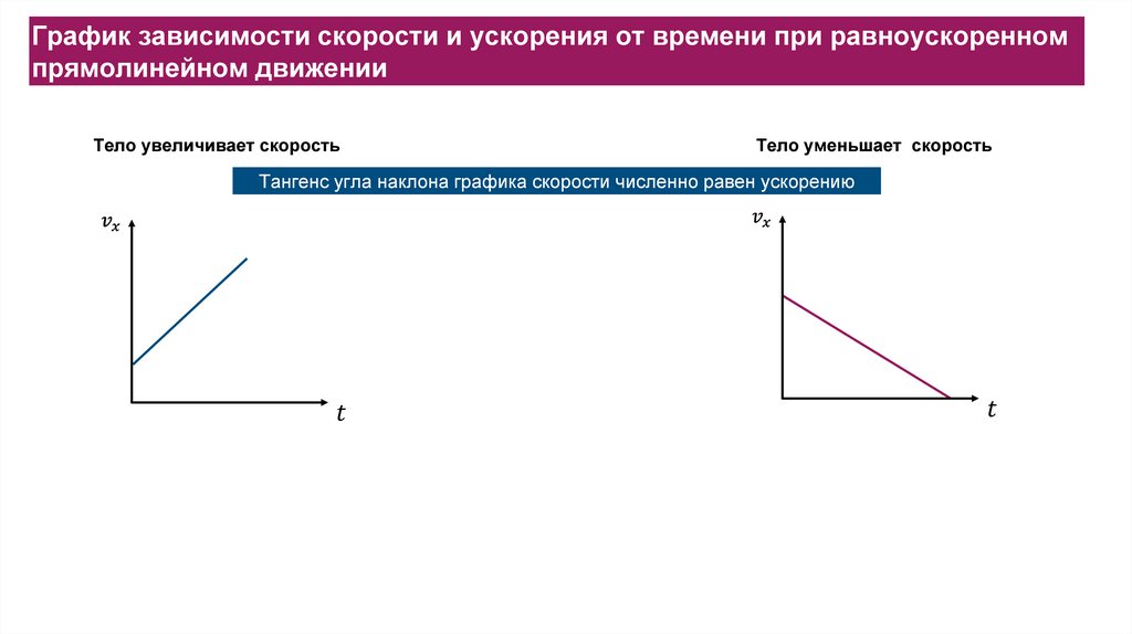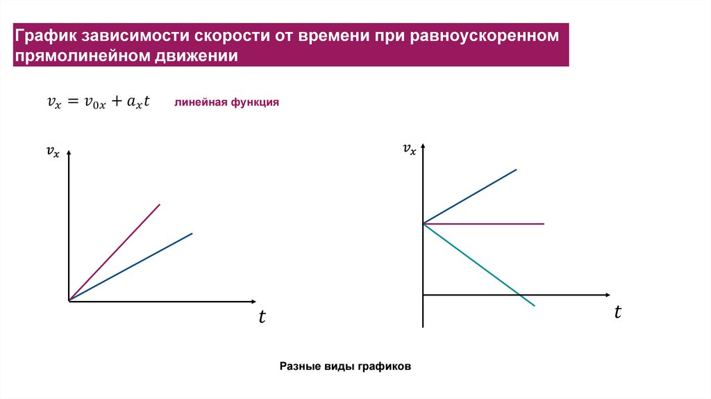 График зависимости скорости от времени при равноускоренномпрямолинейном движении