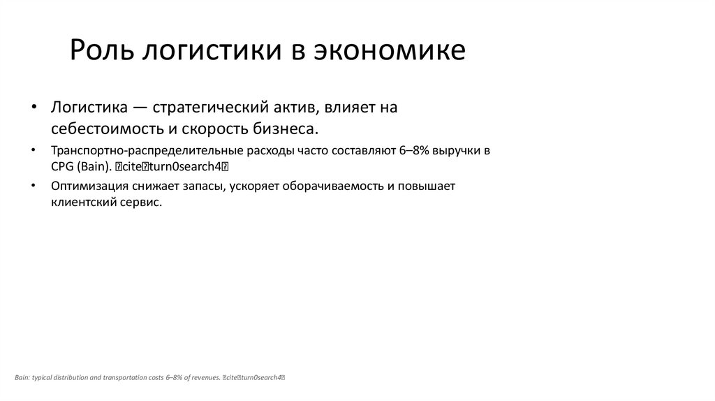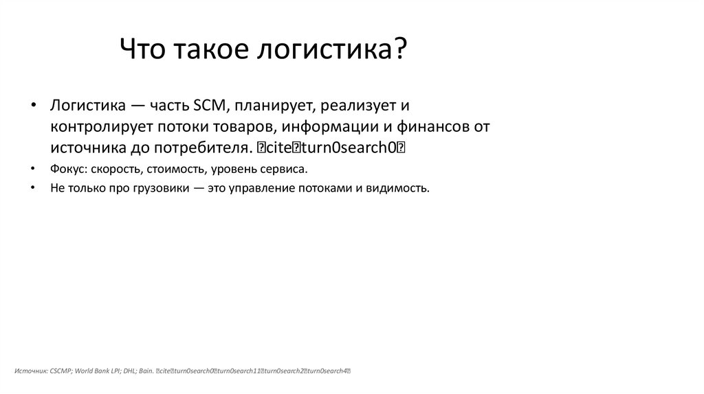 Рекомендуемые источники: CSCMP; World Bank; DHL; Bain; McKinsey. cite turn0search0 turn0search11 turn0search2 turn0search4 turn0search9