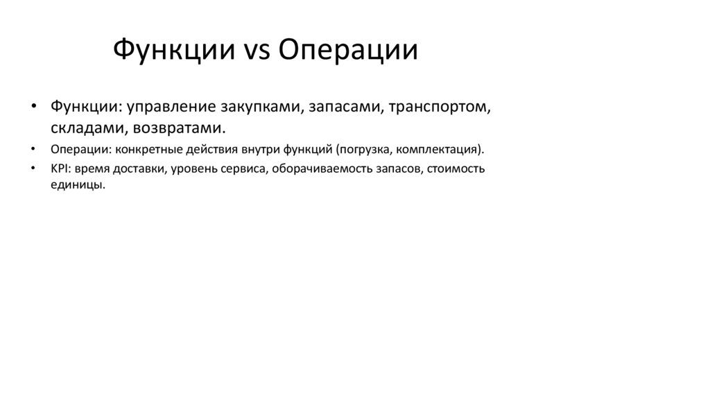 Функции vs Операции• Функции: управление закупками, запасами, транспортом,