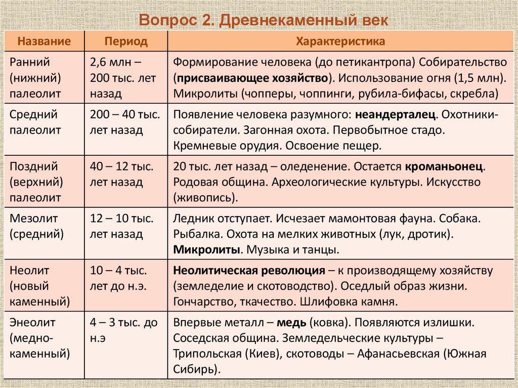 Древнекаменный век (2,6 млн – 3 тыс. до н.э.)