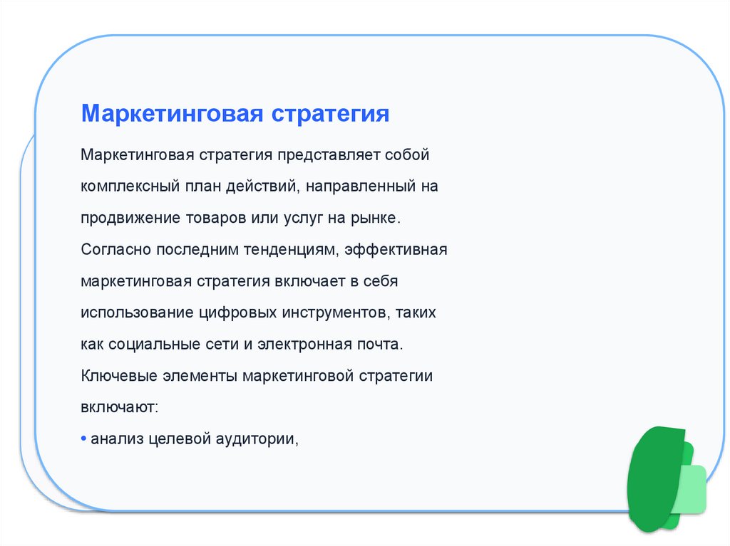 Маркетинговая стратегияМаркетинговая стратегия представляет собой