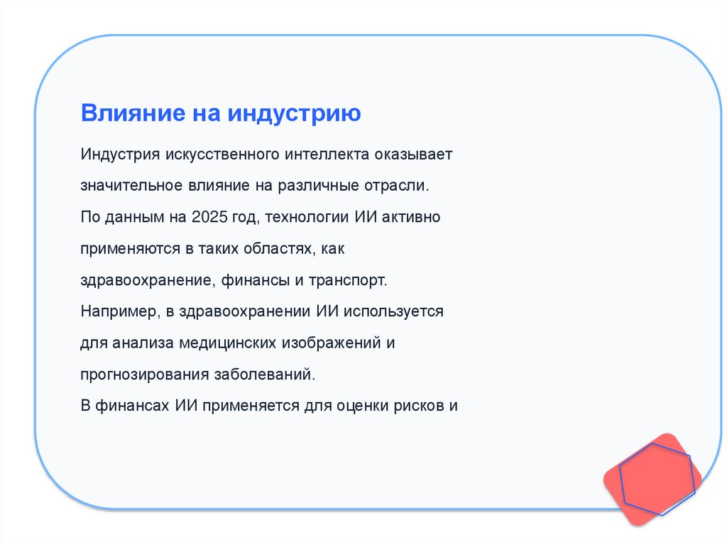 Влияние на индустриюИндустрия искусственного интеллекта оказывает