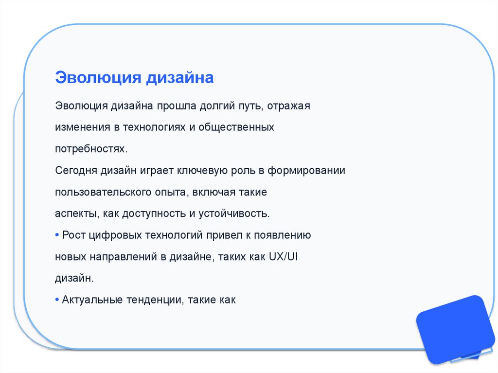 Эволюция дизайнаЭволюция дизайна прошла долгий путь, отражая