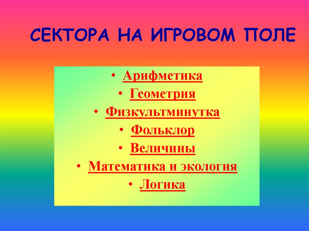 СЕКТОРА НА ИГРОВОМ ПОЛЕ• Арифметика