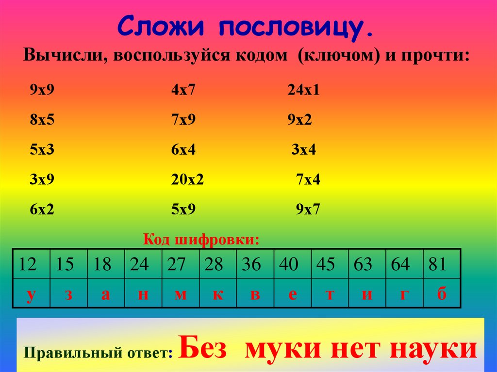 Сложи пословицу.Вычисли, воспользуйся кодом (ключом) и прочти:
