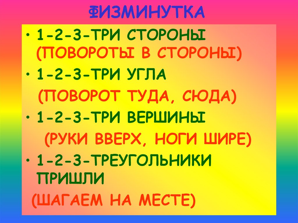 ФИЗМИНУТКА• 1-2-3-ТРИ СТОРОНЫ