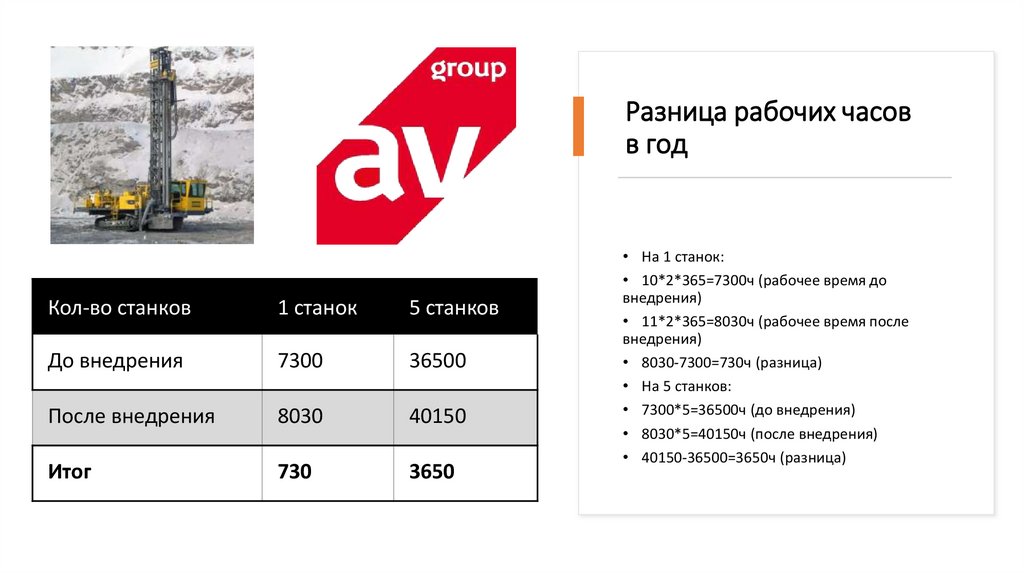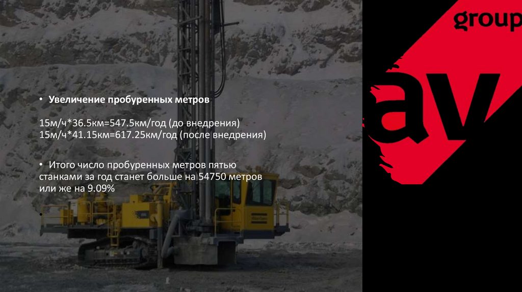 • Увеличение пробуренных метров15м/ч*36.5км=547.5км/год (до внедрения)