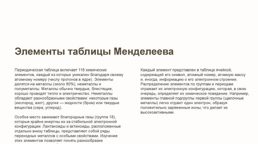 Элементы таблицы МенделееваПериодическая таблица включает 118 химических