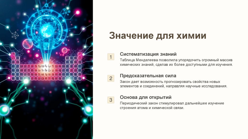 Периодический закон произвёл революцию в химии, предоставив единую систему для всех элементов.