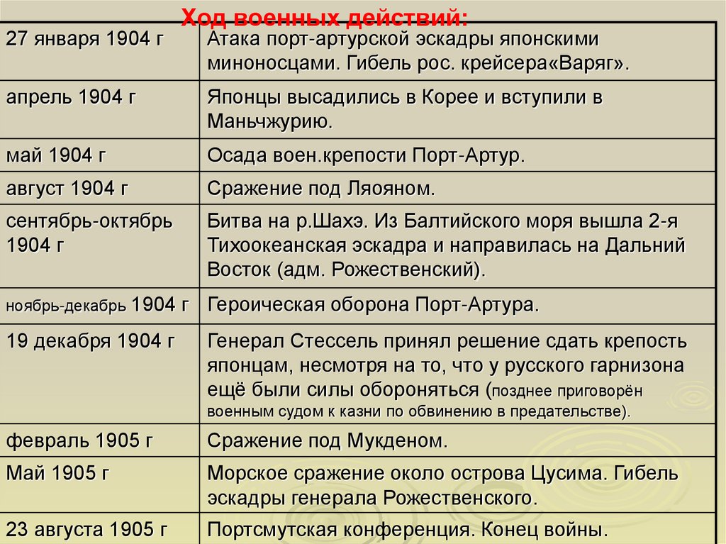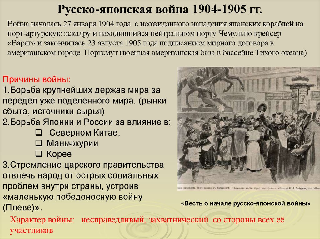 Русско-японская война 1904-1905 гг.Война началась 27 января 1904 года с неожиданного нападения японских кораблей на