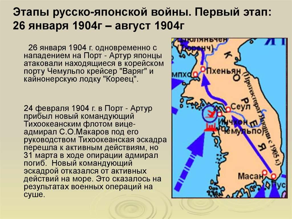 порт-артурскую эскадру и находившийся нейтральном порту Чемульпо крейсер