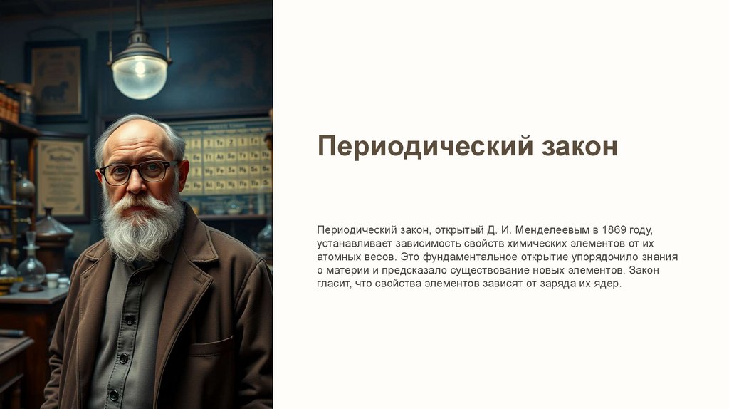 Периодический законПериодический закон, открытый Д. И. Менделеевым в 1869 году,