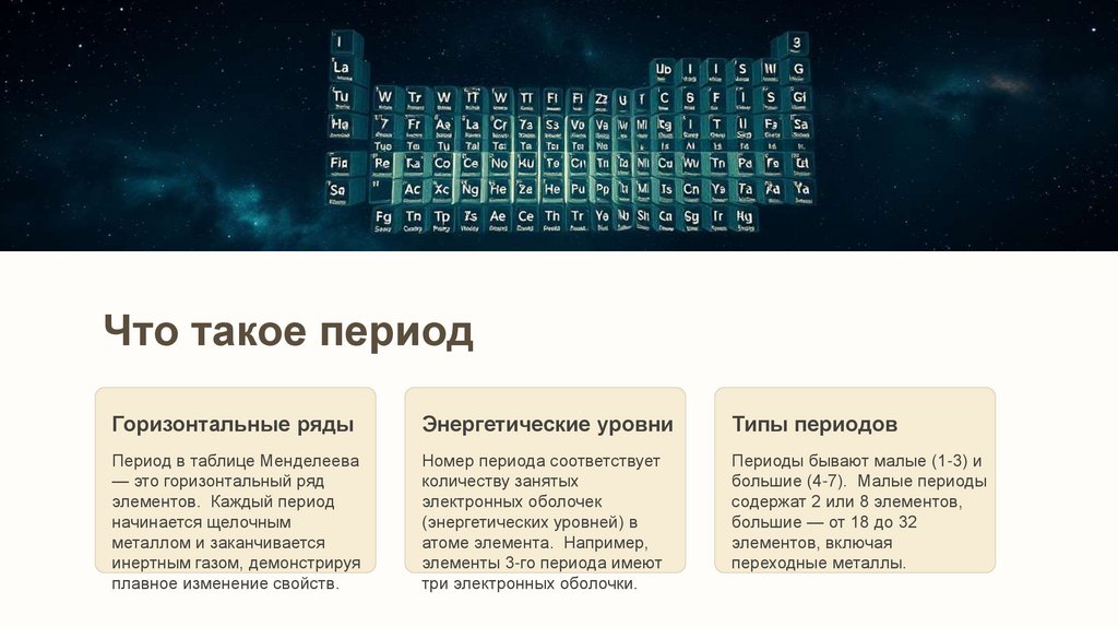 периодам, показывая закономерное изменение их свойств. Свойства,