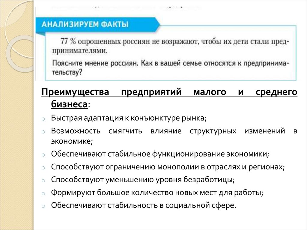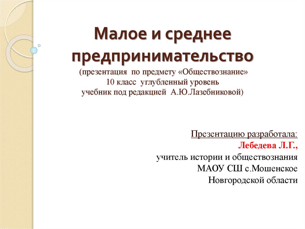 1. Малое и среднее предпринимательство (презентация по предмету «Обществознание» 10 класс углубленный уровень учебник под