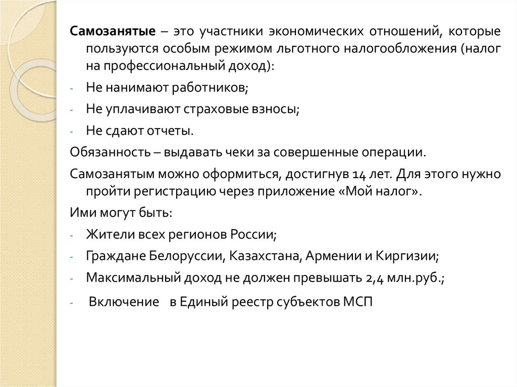 Самозанятые – это участники экономических отношений, которыепользуются особым режимом льготного налогообложения (налог